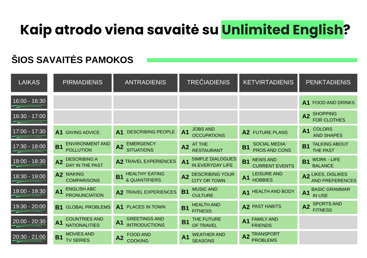 Jungiesi kada nori, nuo 16 iki 21val., kalbi kiek nori ir per 30 dienų pagaliau pajunti realią pažangą – už vieną fiksuotą mokestį.
